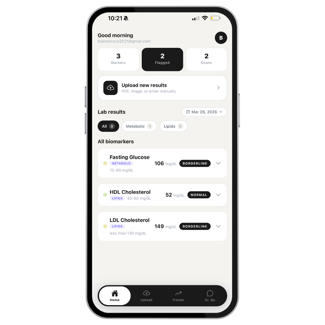 Stop guessing what your blood work means. LabbyQ decodes, explains, and tracks your biomarkers so you can take control of your health.